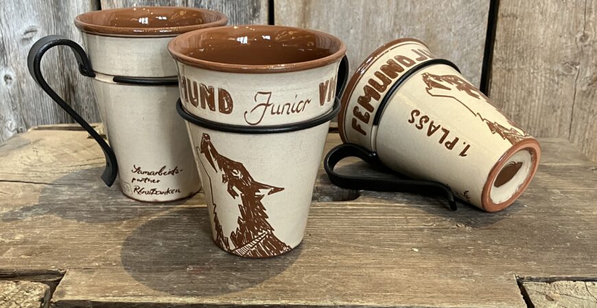 - Kaffekrus med lakkert stålhank for medaljeplassene i F-200 og Junior.